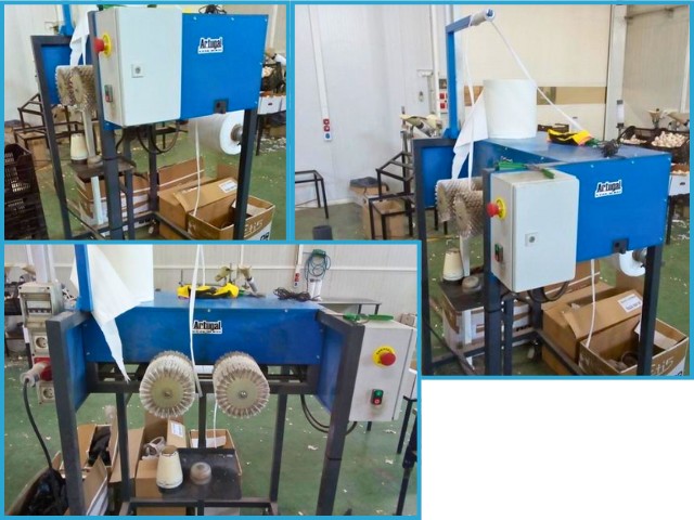 Maquina de meter malla sin necesidad de parar. Con cepillos sin desgaste, con ruedas y regulable en altura. Enmalladora de malla.