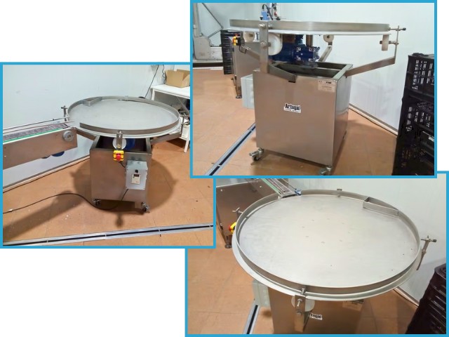 Transportadora en acero inoxidable, resistente y regulable en velocidad. Pensada para manipulación de productos alimentarios o industriales que requieran higiene, y desplazamiento continuo en líneas de producción.