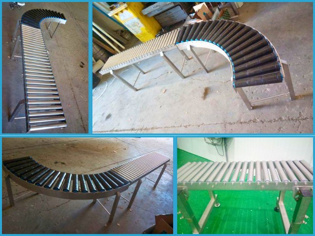 Mesas de rodillos a medida y curvas .a medida y regulable en altura, en inox y hierro.