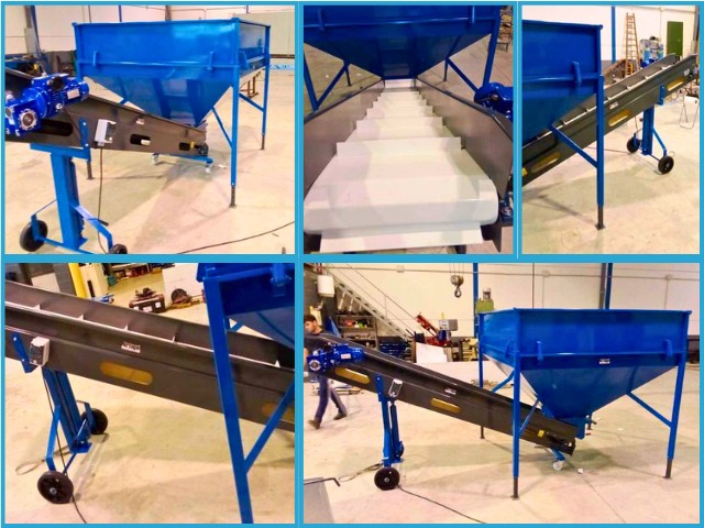 Tolva de 3 m con laterales con cinta de subida, regulador de velocidad.