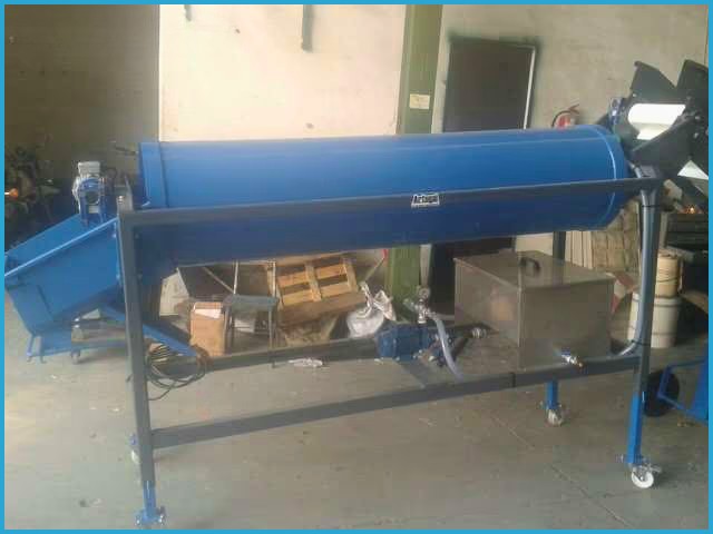 Maquina de Tratamiento de dientes de Ajo con deposito de acero inox. y bomba trifasica. Regulable en altura y ruedas para desplazamiento.